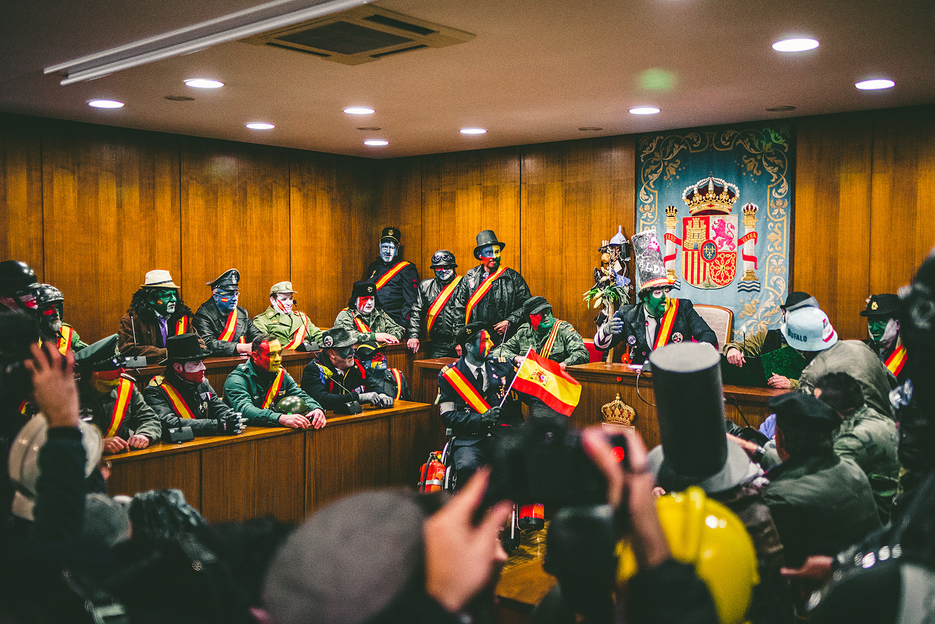 But in Ibi (Alicante), they celebrate an absolutely different festivity this day. Two sides fight for the ficticional control of the city. By one side, "the floured" have taken the city. By the other side, the oposition disagree. The battle is epic, full of flour and eggs in the main square of the city, and they finish with color smoke and a really random "drunk firecrackers" show. Spectators are allowed but by their risk.